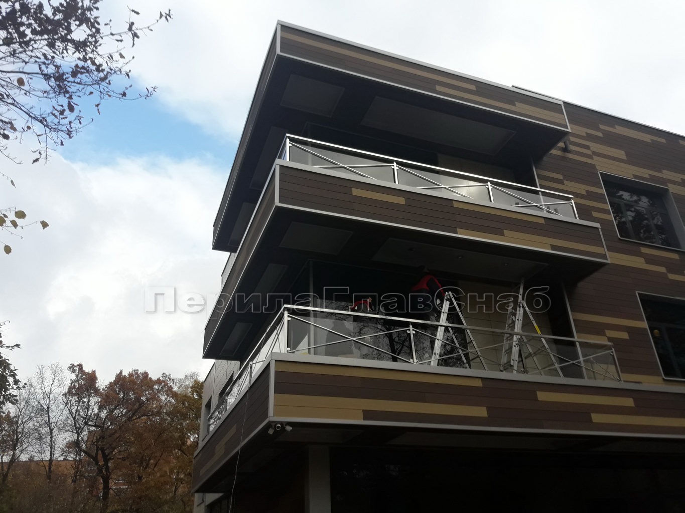 Ветрозащитное ограждение без стоек, на точечном креплении в торец
