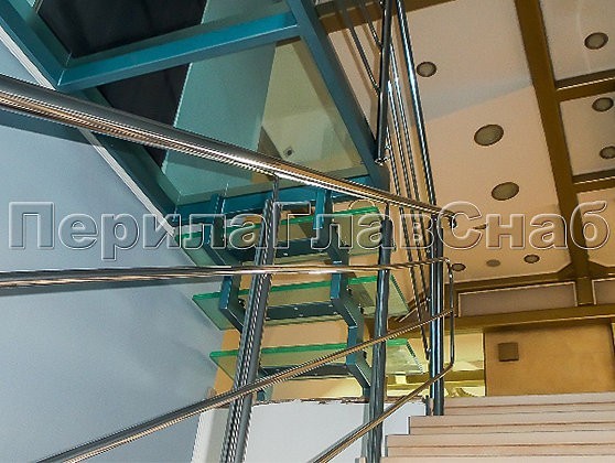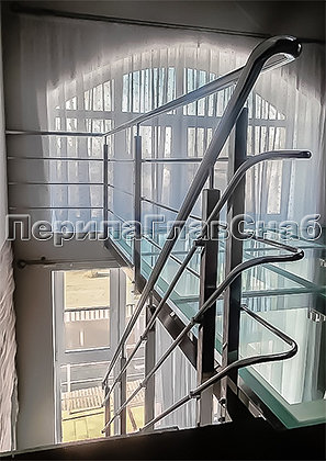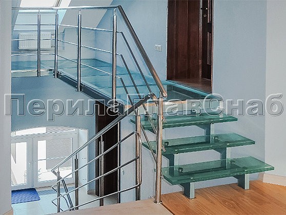 Так родились на свет ограждения балконов, изысканное лестничное ограждение главной входной группы с пристенным поручнем, стеклянные полы на втором этаже и ограждение атриума, плавно переходящее в ограждение косоурной стеклянной лестницы.
