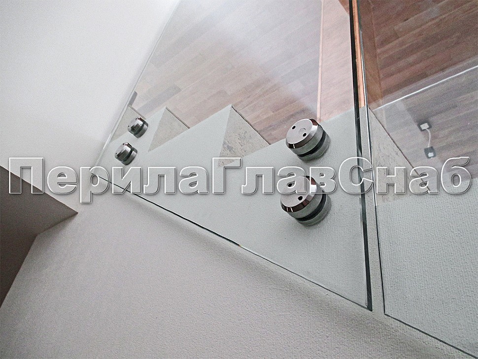 Стеклянные перила установлены на боковом точечном креплении (из полированной нержавейки).