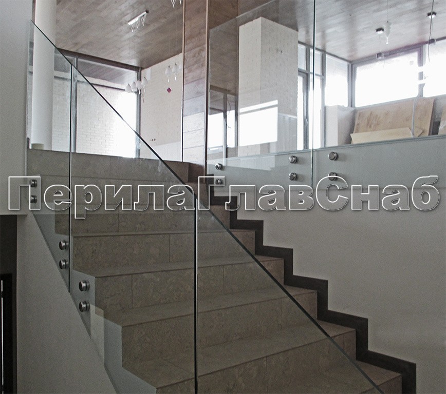 Изящные "воздушные" перила из каленого стекла с открытыми обработанными кромками.