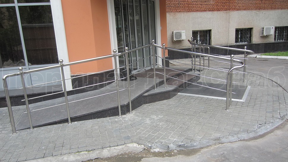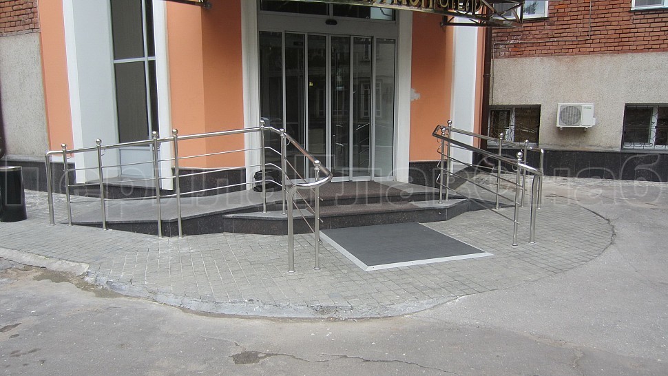 Компанией “ПерилаГлавСнаб” был принят заказ на изготовление и монтаж ограждений для входной группы отеля “Багратион”, состоящей из пандуса и лестницы.