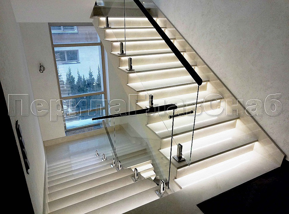 Стильное ограждение из нержавеющей стали с деревянным поручнем - оптимальное решение для частного дома. Деревянный поручень, в отличие от металлического, теплый на ощупь - за него удобно и приятно держаться. Сочетание натурального дерева и нержавеющей стали выглядит очень стильно и такое ограждение великолепно впишется в любой интерьер. В нашу компанию поступил такой заказ. Ограждения из полированной нержавеющей стали внутренние со стеклом высота 950 мм, стойки диаметром 38 мм, крепление сверху методом алмазного бурения диаметр 42 мм на глубину 70 мм, устанавливаются через две ступени в третью, на прямых участках не более 1000 мм друг от друга, наконечник стойки штырь; стекло закаленное прозрачное 8 мм, крепится на зажимные стеклодержатели; низ стойки декоративная крышка диаметр 56 мм, поручень деревянный диаметр 38 мм из дуба тонированный и лакированный, окончание поручня заглушка, уходов поручня в стену через фланец, поручень завязан нержавеющим отводом. Крепление нержавеющих элементов ограждения между собой точечная аргонно-дуговая сварка, с последующей зачисткой и полировкой.