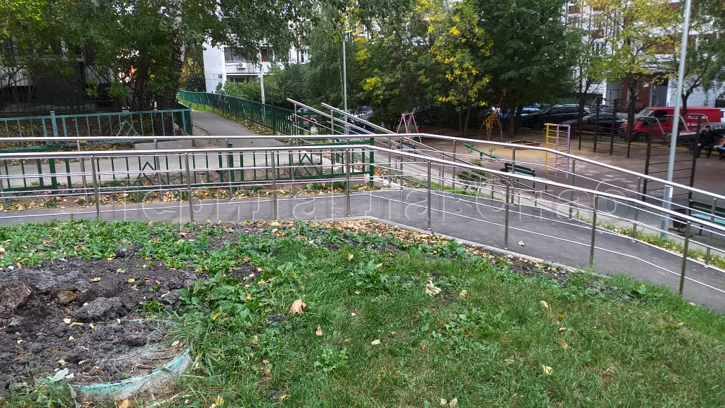 Наша компания «ПерилаГлавСнаб» выполнила заказ на изготовление и монтаж ста пятидесяти метров погонных ограждений из полированной нержавеющей стали, в рамках программы по благоустройству дворовых территорий города Москвы. Так как ограждения устанавливались на улице, мы использовали нержавеющую трубу и комплектующие марки стали Aisi 304. Ограждения состояли из следующего конструктива: