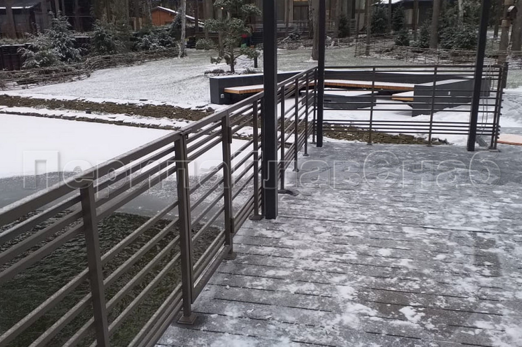 К нам в компанию обратился заказчик, с просьбой помочь изготовить и смонтировать тридцать пять погонных метров ограждений в частном доме, находящегося в коттеджном поселке класса De Luxe «Променад». Чтобы ограждения вписывались в общую концепцию экстерьера участка, мы предложили заказчику покрыть ограждения порошковой краской по каталогу Ral. А, для того чтобы избежать в дальнейшем коррозии металла мы использовали трубу и комплектующие из шлифованной нержавеющей стали. На шлифованную поверхность порошковая краска ложиться равномерно и помогает избежать, вздутия и в дальнейшем отслоения краски от металла. Для согласования с заказчиком конструктива и общего вида ограждений, нашим конструктором был разработан чертеж. Чертеж дает возможность заказчику понять где и как у него будут установлены перила и в случае возникновения дополнительных пожеланий внести корректировки до начала монтажа. Конструкция ограждения была выполнена из профильной трубы квадратного сечения, стойки и поручень труба 30*30мм, заполнение между стойками труба 20*20мм. Покраска порошковой краской должна производиться в заводских условиях с соблюдением всех технологических нюансов, в покрасочной камере.  Так как покрасочная камера имеет определенные размеры то для этого необходимо было разделить ограждения на секции. Работы по изготовлению ограждений проводились в несколько этапов, первым этапом был монтаж секций ограждений на объекте, затем его демонтаж для транспортировки в покрасочную камеру, после покраски секции доставлялись на объект для дальнейшего монтажа. Места сварки секций были зачищены, зашлифованы и подкрашены вручную, что никак не испортило внешний вид ограждений.  Работы по изготовлению и монтажу ограждений под ключ, были выполнены и сданы в течение тридцати рабочих дней.