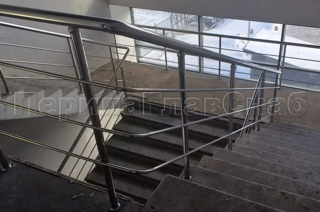 Большая работа по установке нержавеющих ограждений  была проделана в течение 2019г в городе Зеленограде. В четырех корпусах компании заказчика ЭЛМА был произведен капитальный ремонт. Который включил в себя демонтаж и монтаж перил в исполнении компании ПерилаГлавСнаб. Работы по изготовлению и монтажу ограждений велись поэтапно и смежно с отделочной организацией. Т.е. необходимо было согласовывать шаги по графику производства не только с заказчиком, но и с его субподрядчиком. Как раз для этих целей наш прораб каждый день находился на объекте. Двести восемьдесят два метра погонных перил одинакового конструктива, но с разным методом крепления стоек установили штатные монтажники компании ПерилаГлавСнаб. Ввиду того что ширина лестничных маршей была разная на всех лестницах. Необходимо было выдержать пожарные нормы, для безопасной эвакуации людей в возможной чрезвычайной ситуации. Торцевое (боковое) крепление стоек для усиления  в начале марша поручень для жесткости торцевого крепления основных перил уходит вбок и в пол, сменяло от лестницы к лестнице бурение сверху в ступень по средствам алмазных коронок с подачей воды, что бы избежать запыления помещения. Изюминкой проекта стал незаметный глазу перепад высоты ограждения по маршу 950 мм на высоту ограждения площадки в 1100 мм. Такого результата  получилось достигнуть играя высотой стоек, чем могут похвастаться наши высококвалифицированные и опытные бригады монтажников. Стоимость погонного метра в данном заказе составила 4 870 рублей.