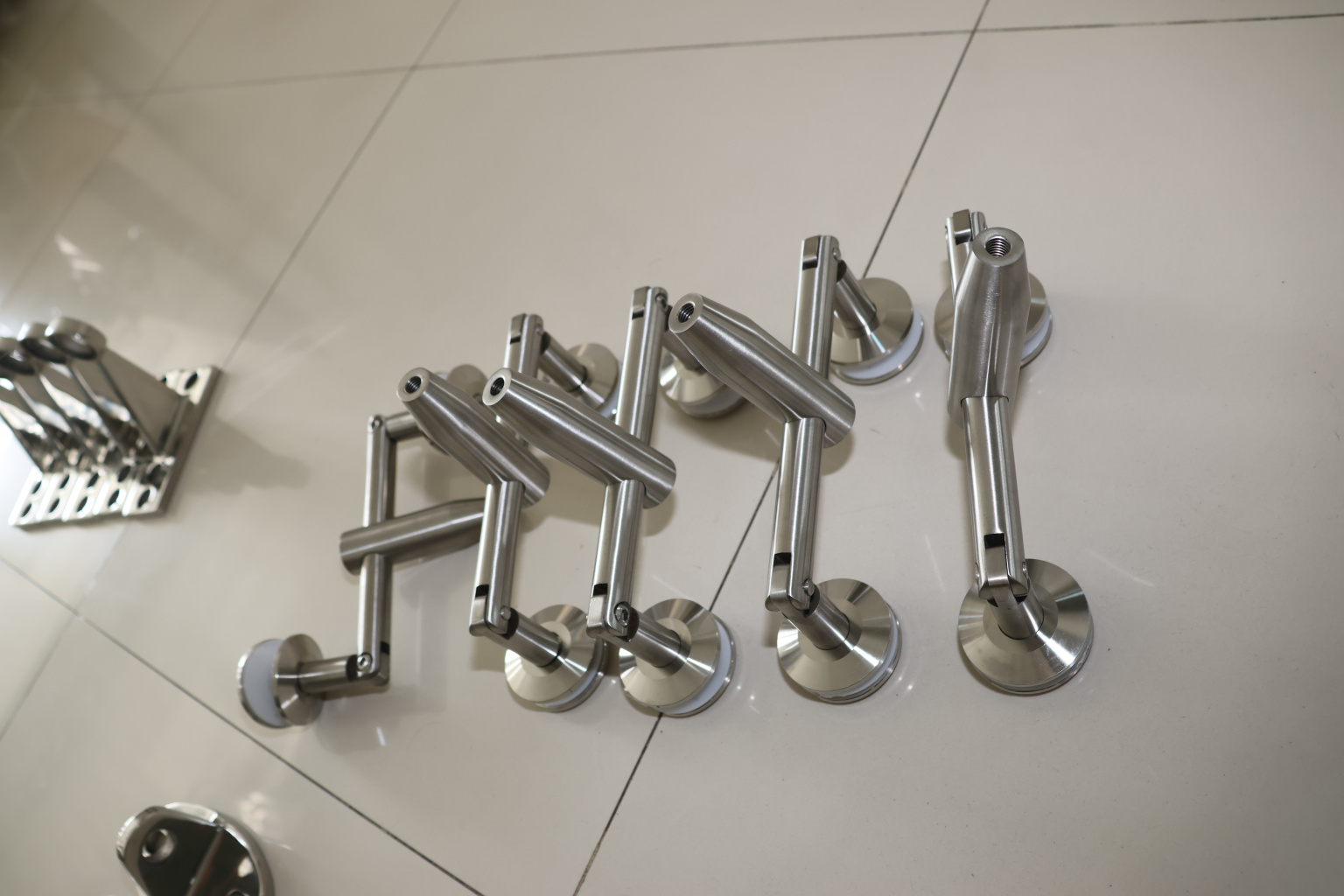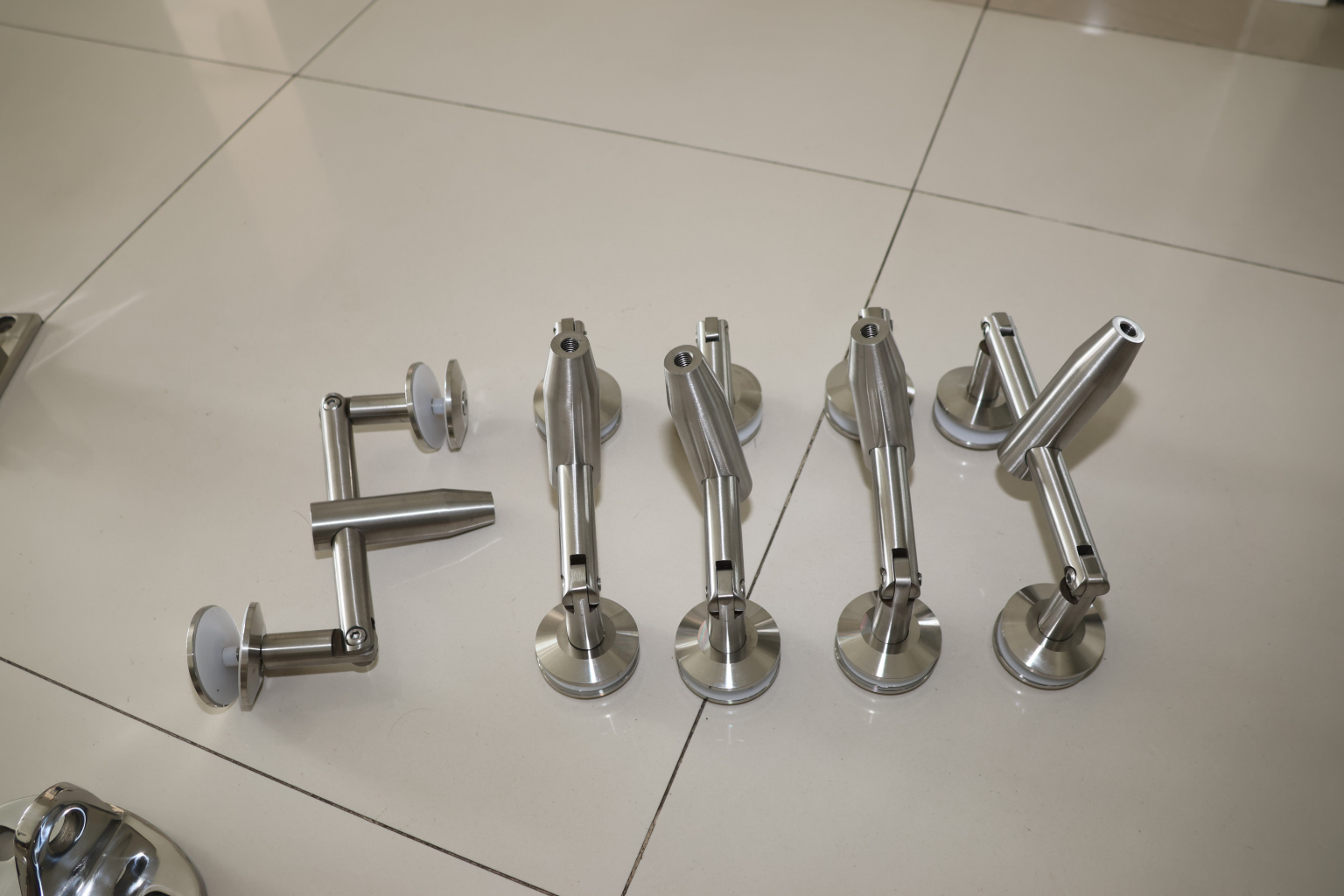Двойное крепление с рутелями к стене, поверхность полированная, марка стали- AISI 304