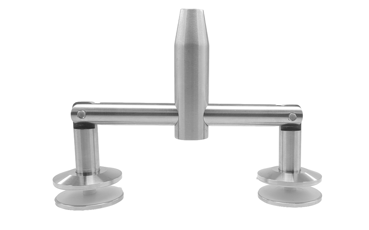для крепления двух стекол к стене. Монтируется между стеклами в случае, когда необходимо поставить козырек с длиной по фасаду более 1300мм. Используется со стеклами 10-20мм