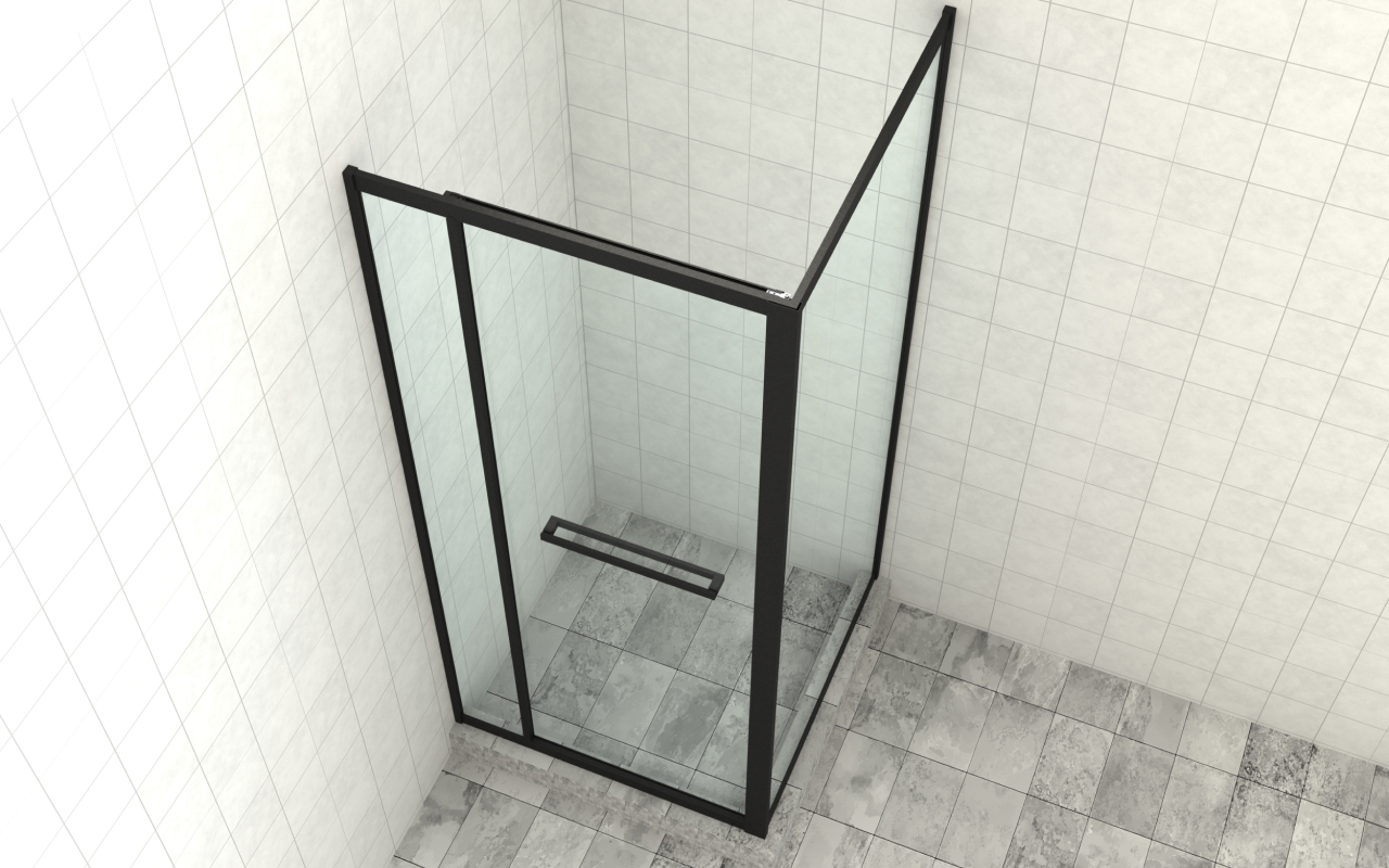 Комплект душевой с внутренней подвижной дверью, толщина стекла 8мм, 900х900х2000, AUSI 304, черная
