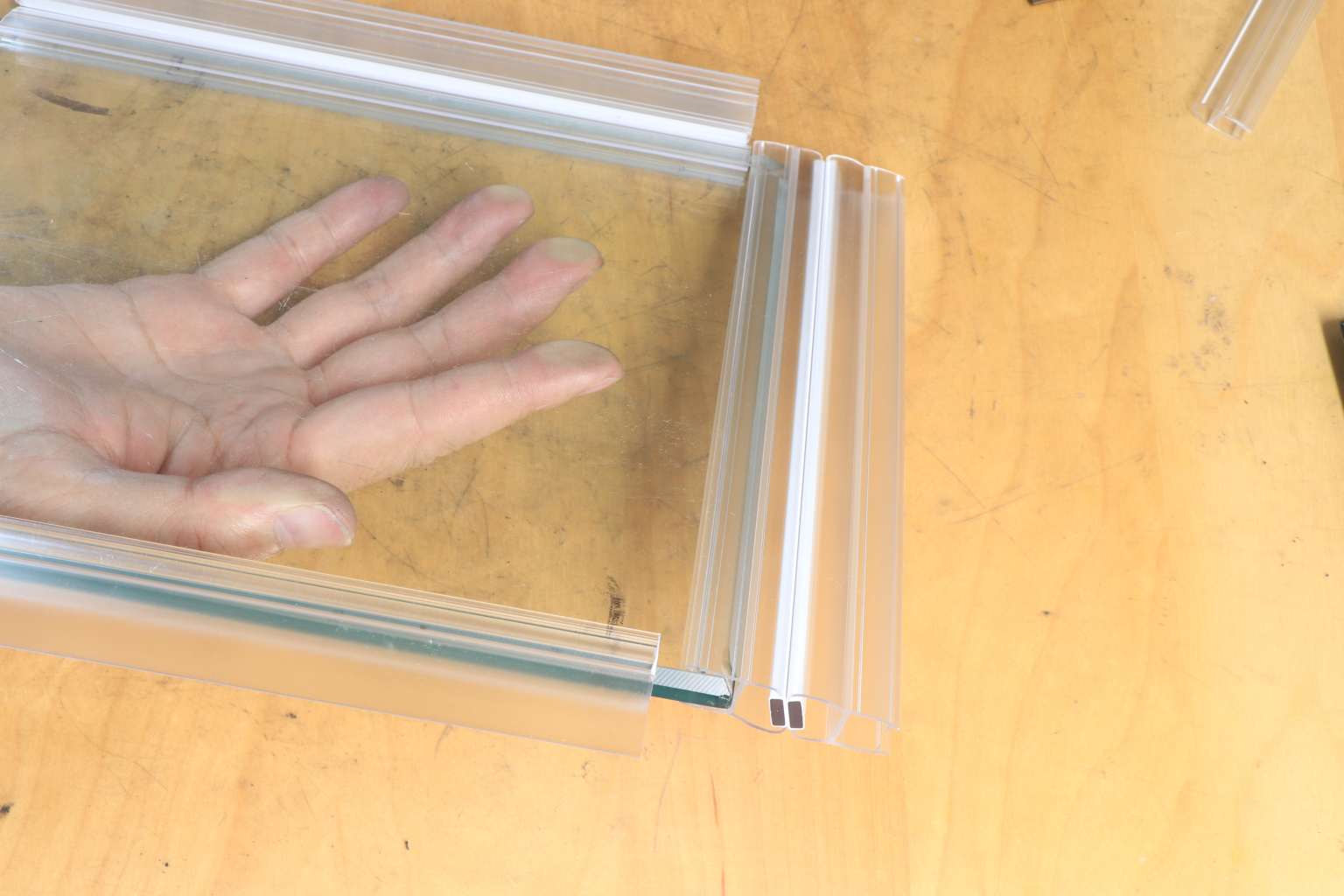 Монтируется по всему периметру стеклянного листа. Позволяет герметично соединять стеклянные панели между собой благодаря встроенному магниту. Толщина одного типоразмера составляет 1.5 мм, длина – 2200 мм.