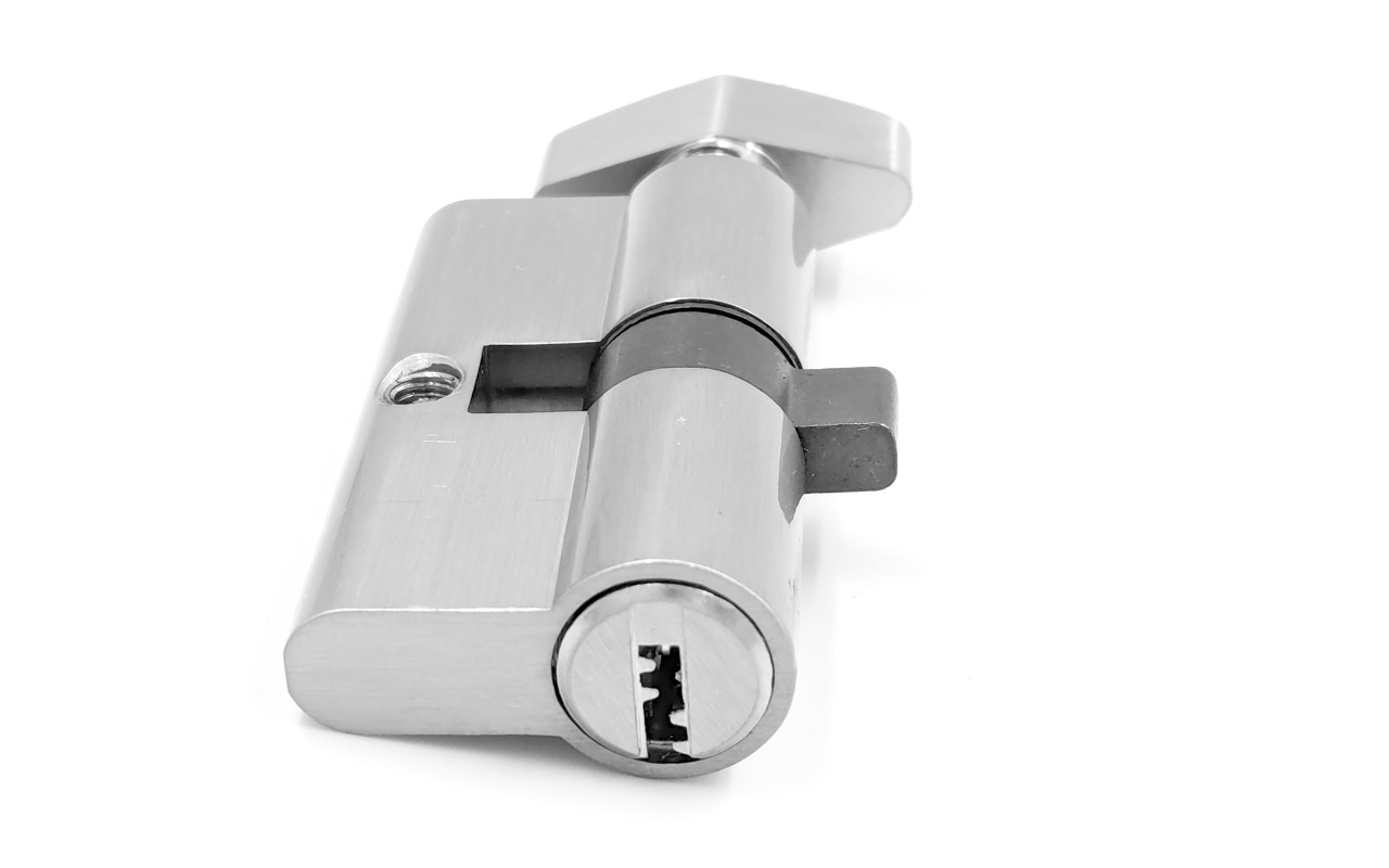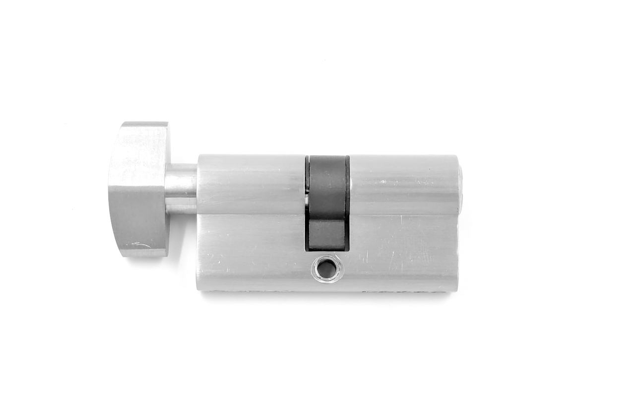 вставить личинку в отверстие. После этого нужно совместить крепежное отверстие на личинке с отверстием в корпусе замка. На этом этапе необходимо вставив шуруп «поймать» отверстие личинки и вкрутить шуруп до конца, не забыв после этого проверить работоспособность запирающего устройства. И собрать замок обратно
