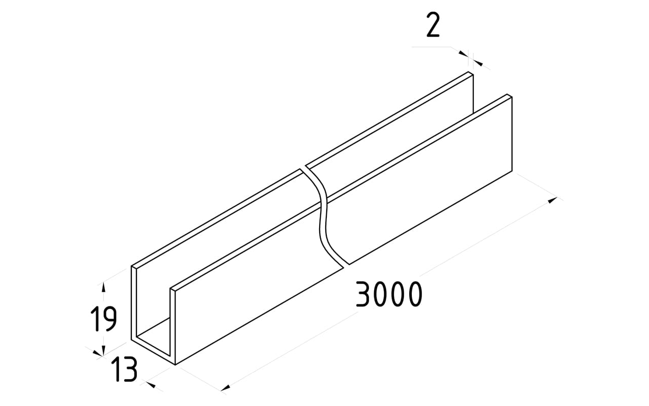 П-образный профиль 19x13, L=3000, алюминий шлиф t756-4-3000 ALS