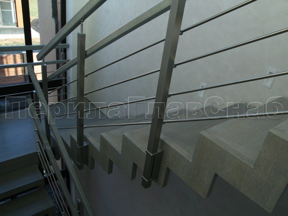 Ограждения с квадратным поручнем со стойками в каждую ступень без ригелей