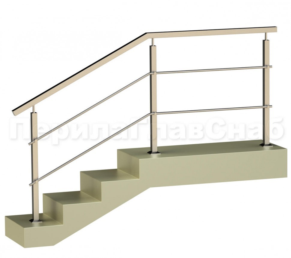 Три ригеля на сварке, квадратный деревянный поручень и круглые стойки