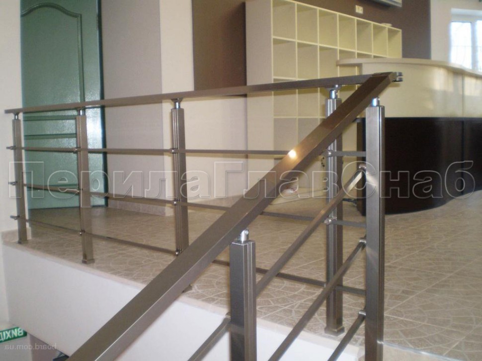 Четыре ригеля на сварке, круглый поручень и квадратные стойки