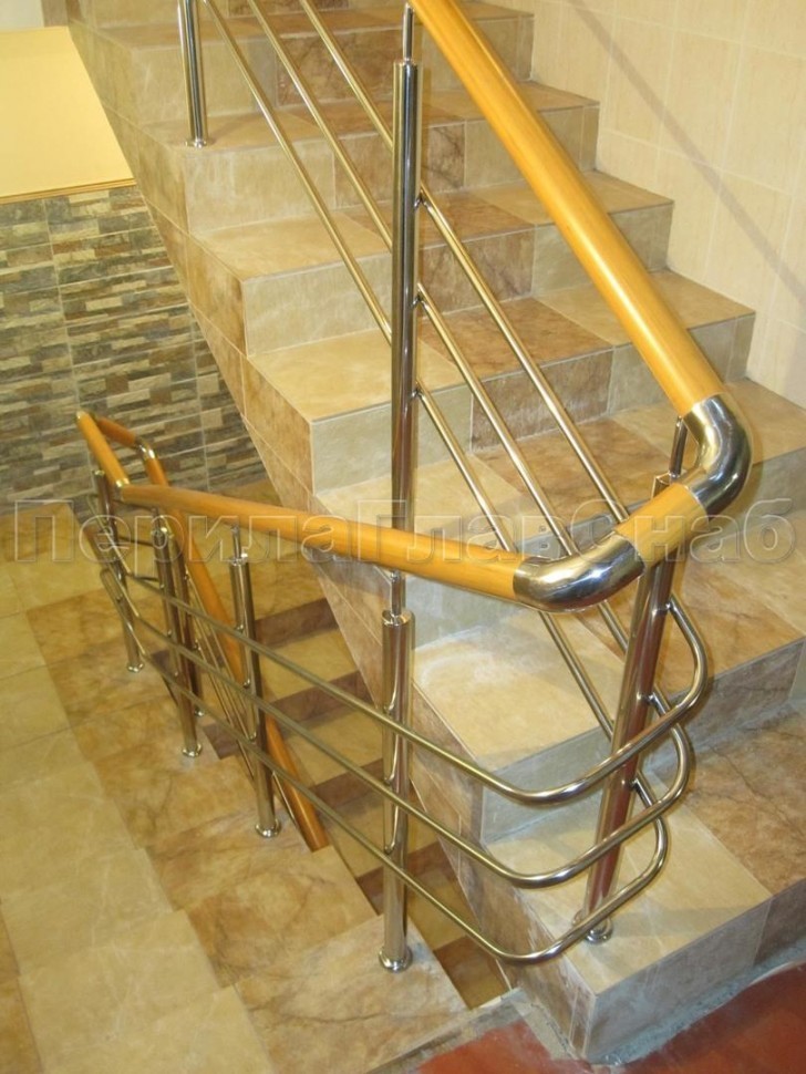 Нержавеющие ограждения без ригелей с круглым поручнем и стойками с деревянными вставками