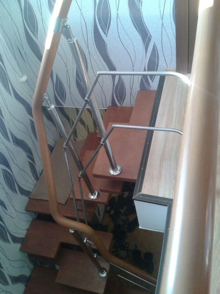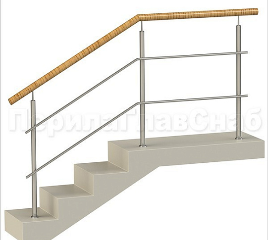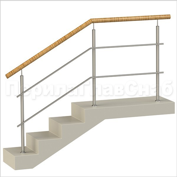 Три ригеля на сварке, квадратный деревянный поручень и круглые стойки