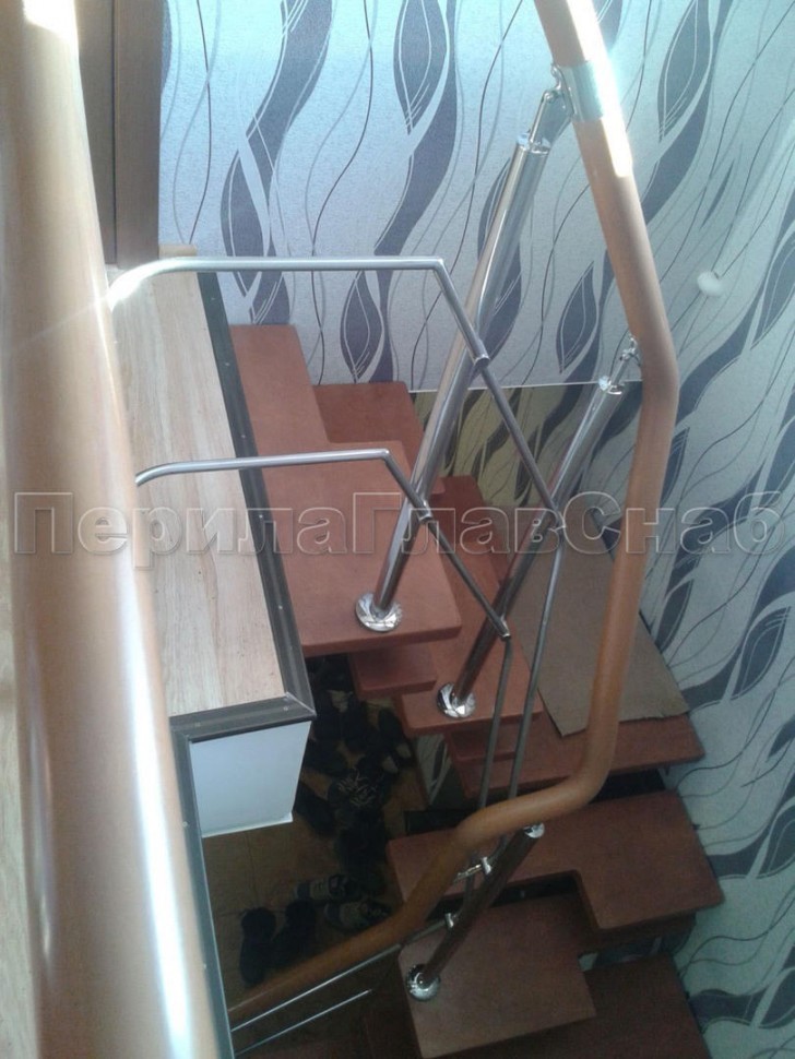 Нержавеющие ограждения без ригелей с круглым поручнем и стойками с деревянными вставками