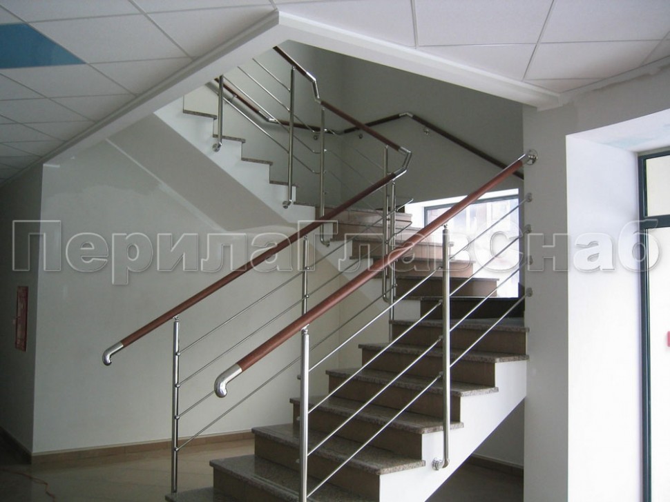 Записаться на встречу Четыре ригеля на держателях, круглый деревянный поручень и круглые стойки