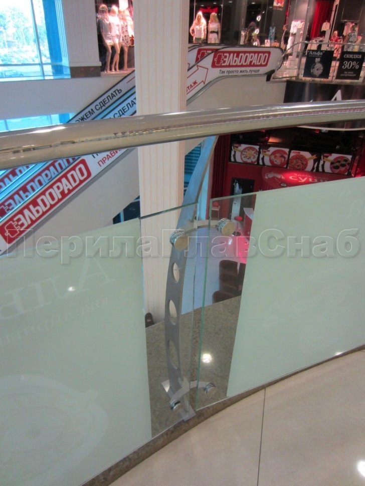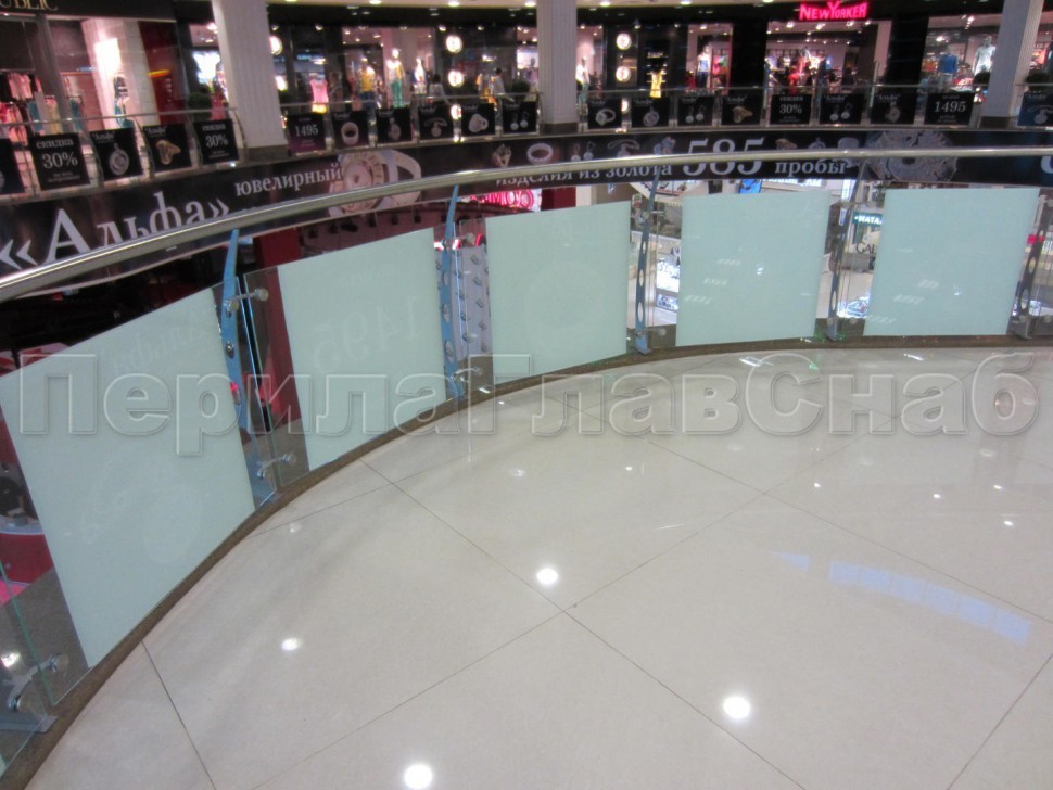 Ограждение атриума из стекла с поручнем без стоек