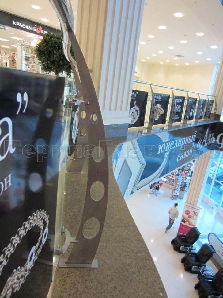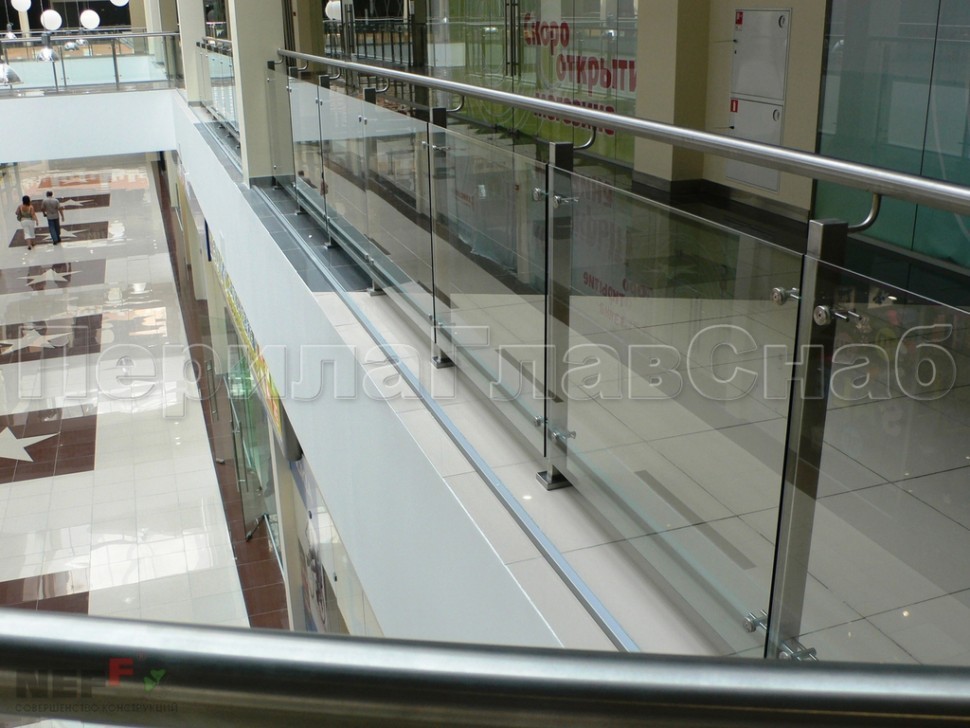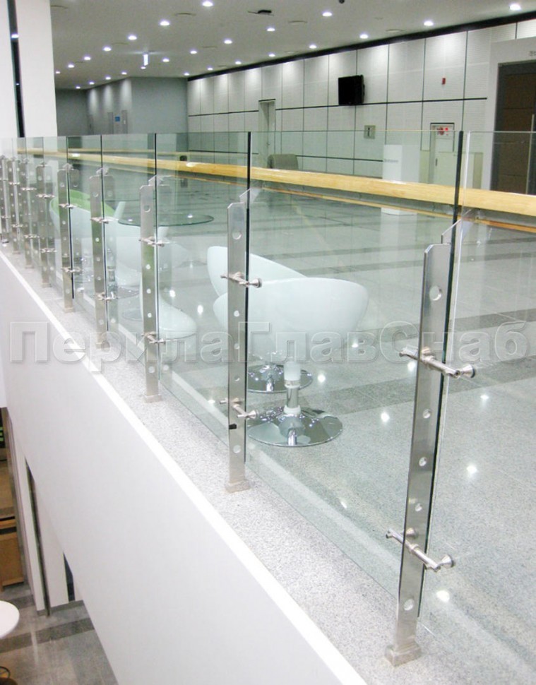 Ограждение атриума со стеклом и стойками
