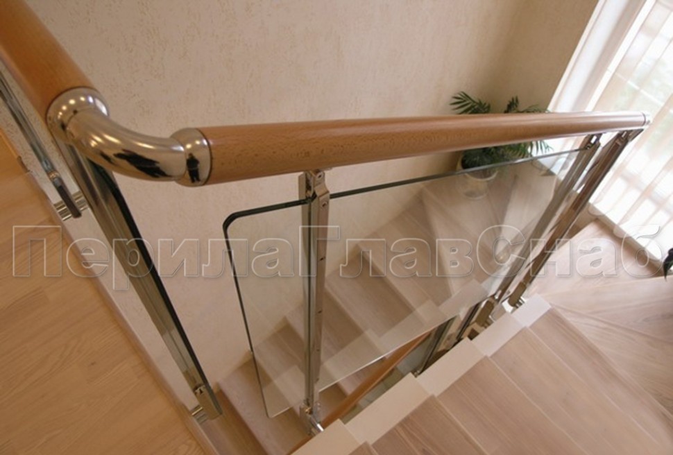 Четыре ригеля на держателях, квадратный деревянный поручень и стойки с деревянными вставками