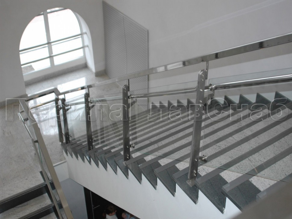 Ограждение для лестницы из нержавейки с зажимными стеклодержателями для крыльца