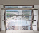 Надежное и простое ограждение оконных проемов из нержавейки. Крепление в торец позволяет сохранить место в условиях узких лестничных маршей.