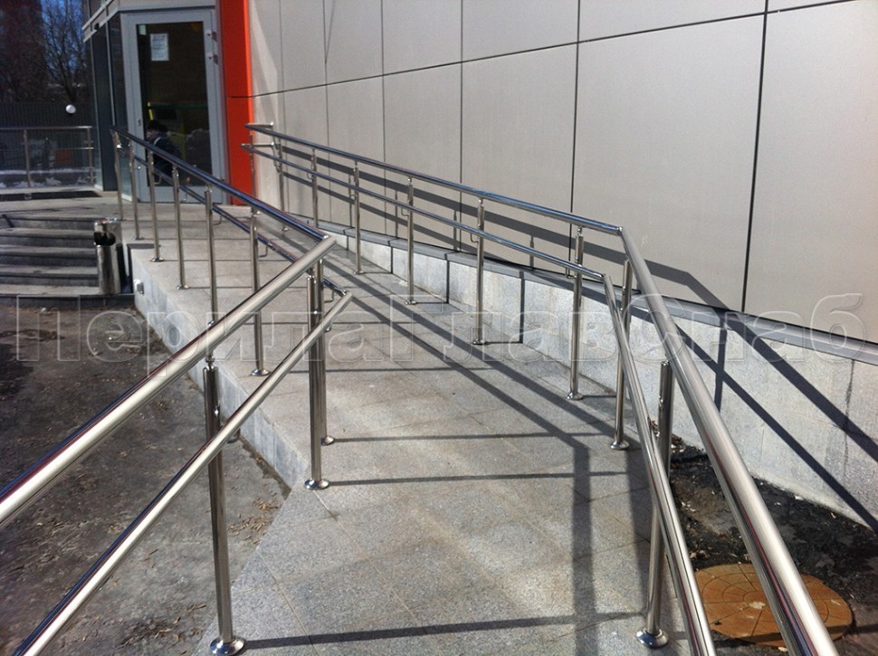Ограждения с квадратным поручнем и дополнительным поручнем без ригелей