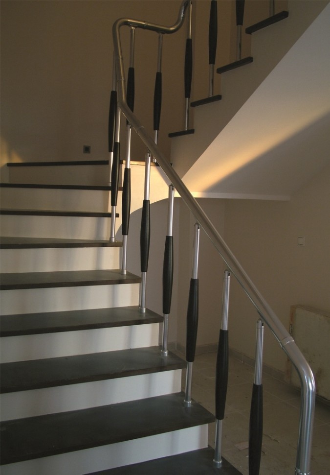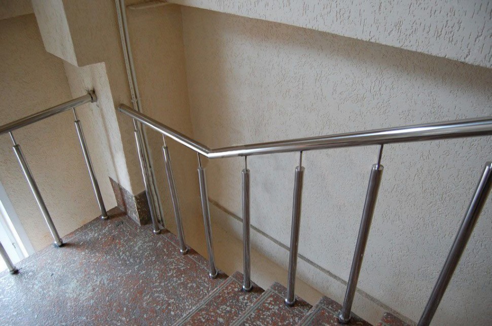 Четыре ригеля на сварке, квадратный поручень и круглые стойки