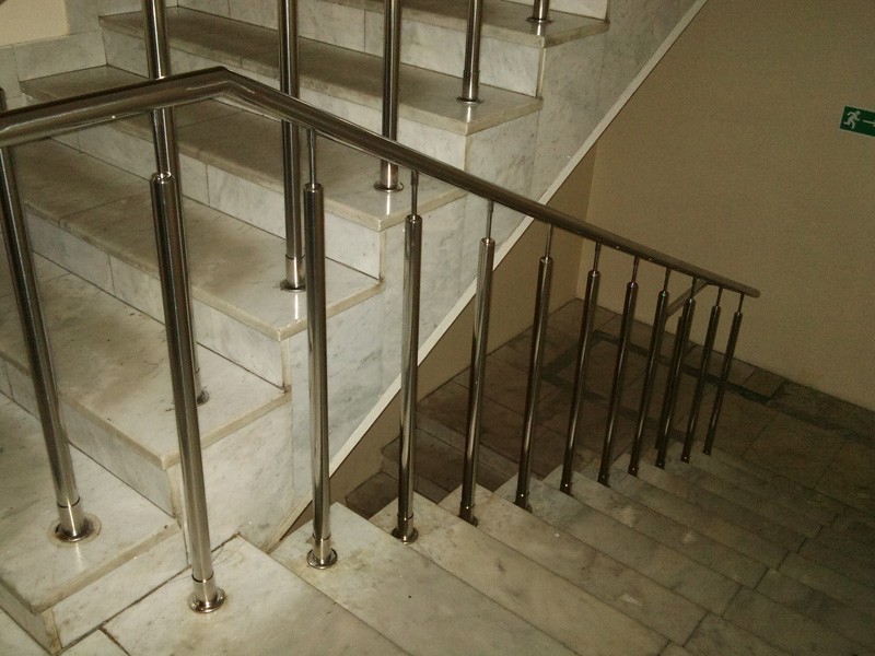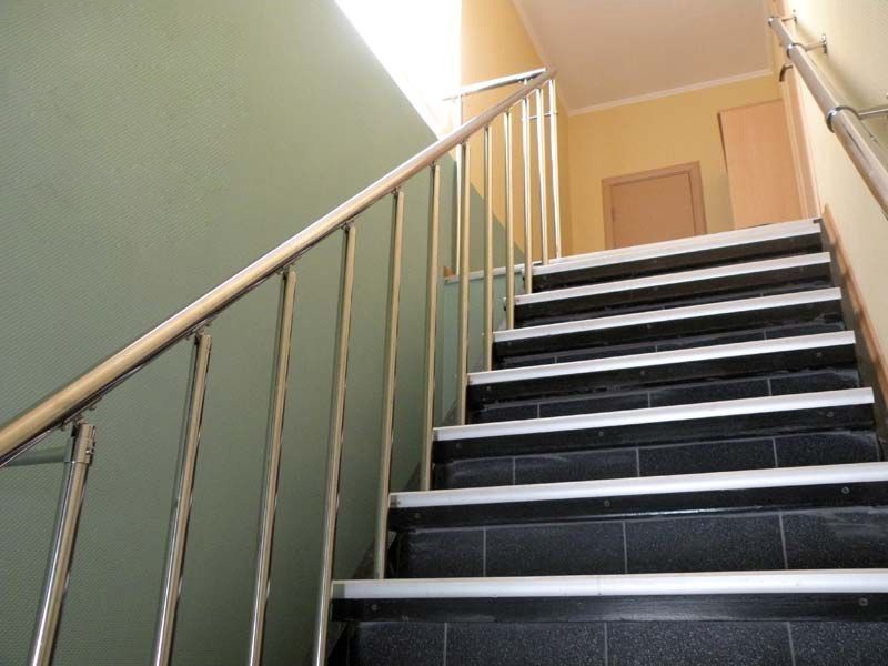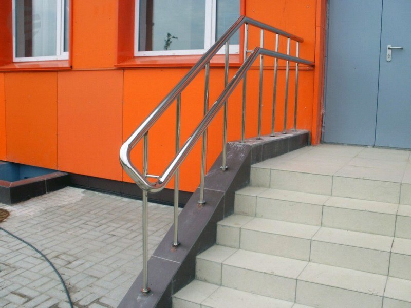 Нержавеющие ограждения для школ и детских садов с вертикальным заполнением “Частокол” - вариант №1 для крыльца