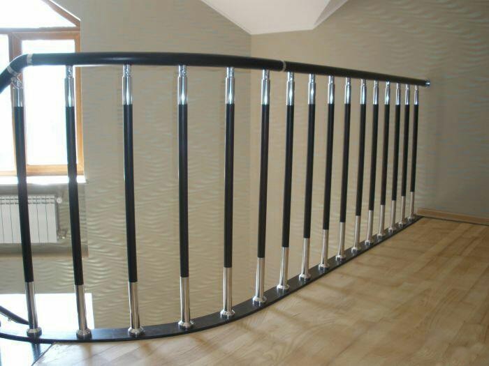 Четыре ригеля на сварке, круглый поручень и квадратные стойки