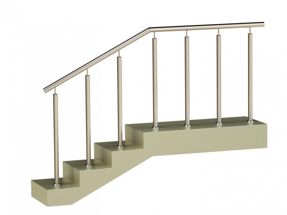 Четыре ригеля на держателях, круглый поручень и квадратные стойки