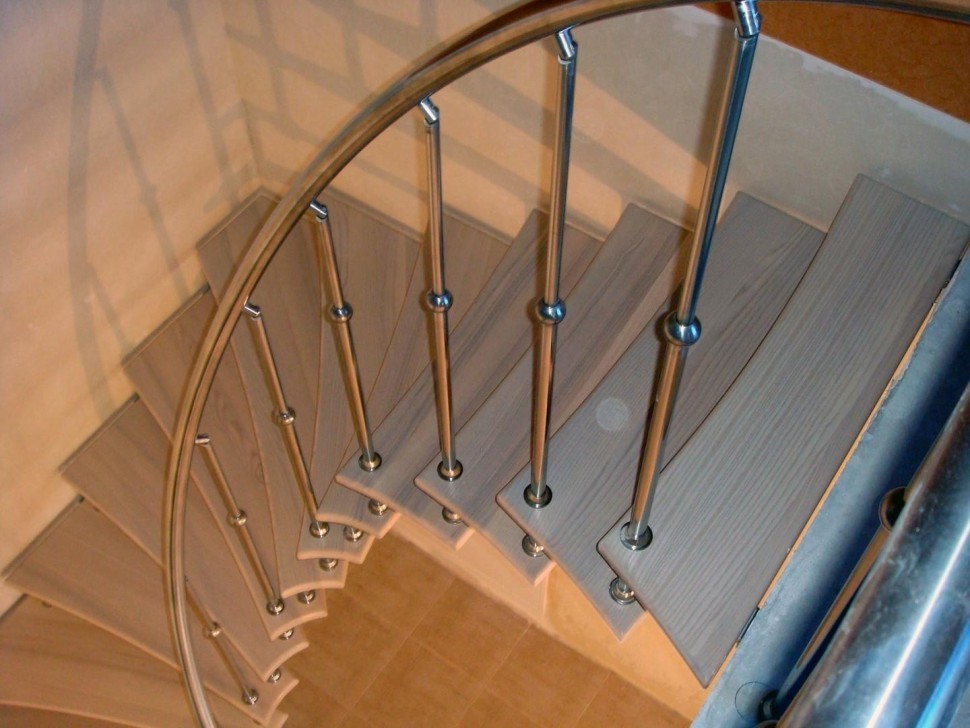 Ограждения со стойками в каждую ступень с круглым деревянным поручнем без ригелей