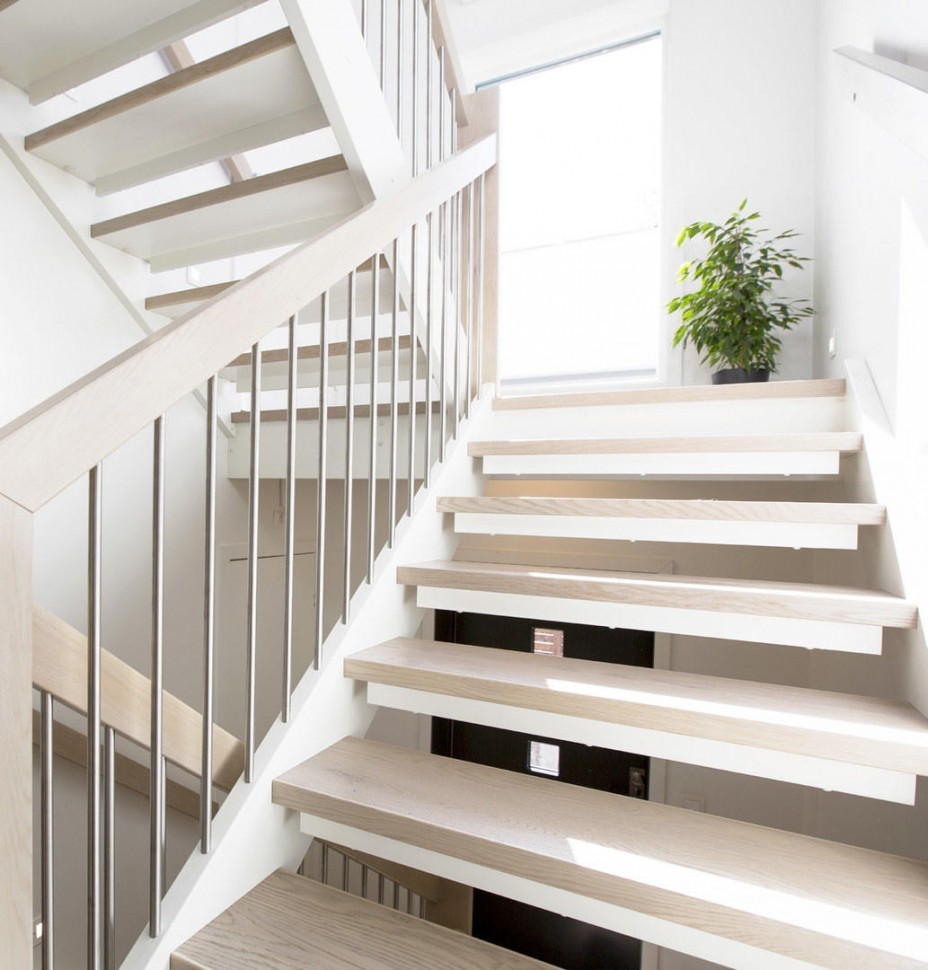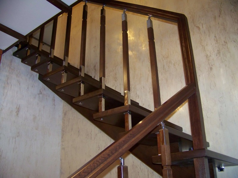 Ограждения со стойками в каждую ступень с квадратным деревянным поручнем без ригелей