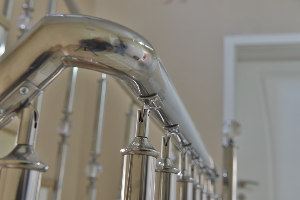 Лестничное ограждение с тремя ригелями и поручнем из латуни