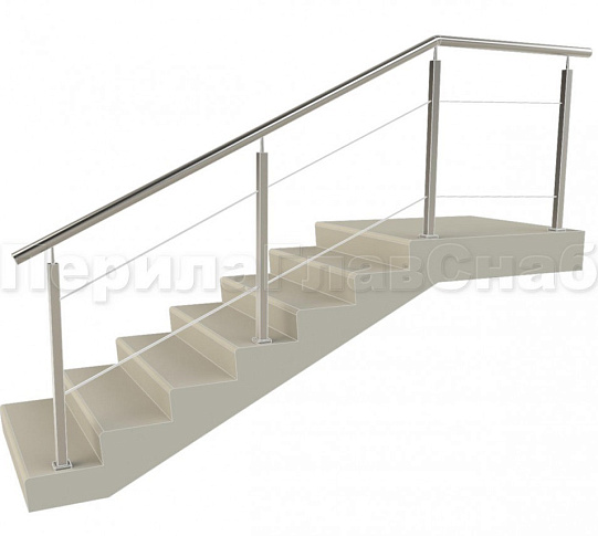 Ограждения с квадратным поручнем со стойками в каждую ступень без ригелей