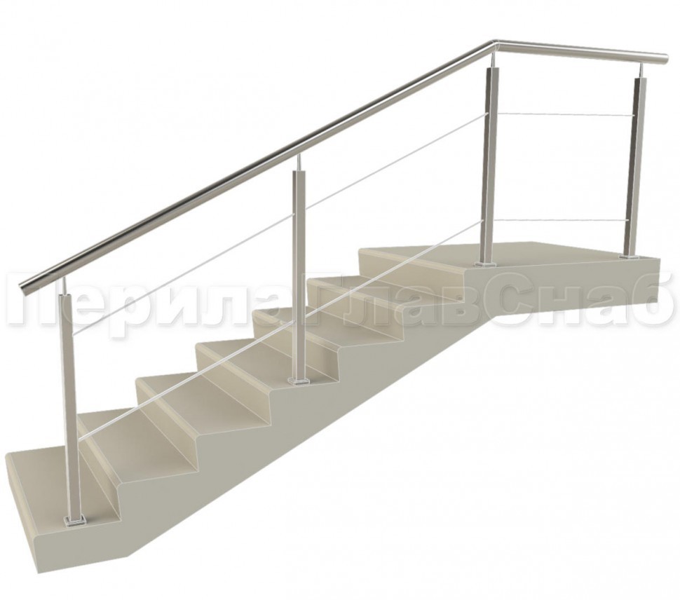Ограждения с квадратным поручнем со стойками в каждую ступень без ригелей