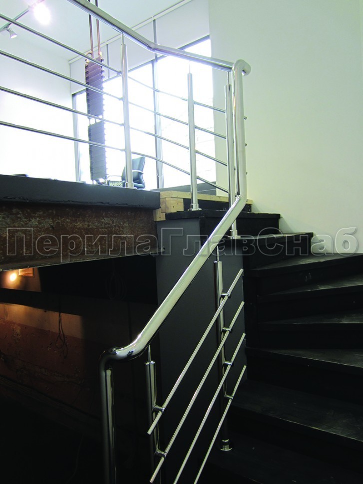 Четыре ригеля на сварке, круглый поручень и квадратные стойки