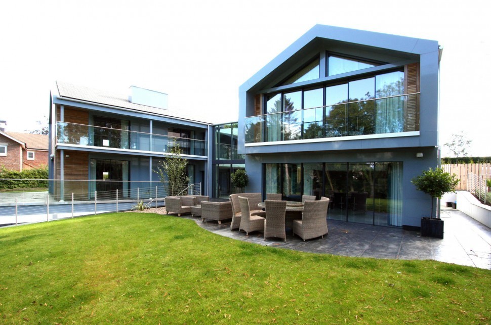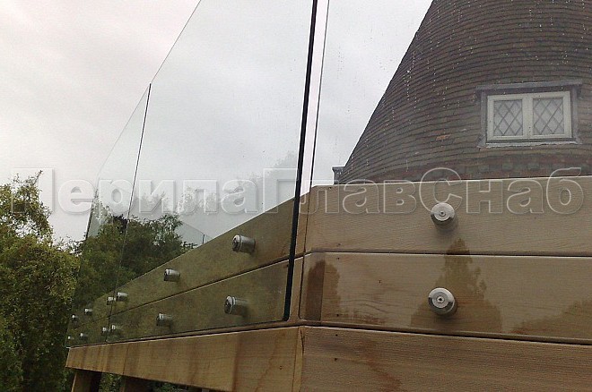 Ограждение с деревянным поручнем на выносе на точечном креплении