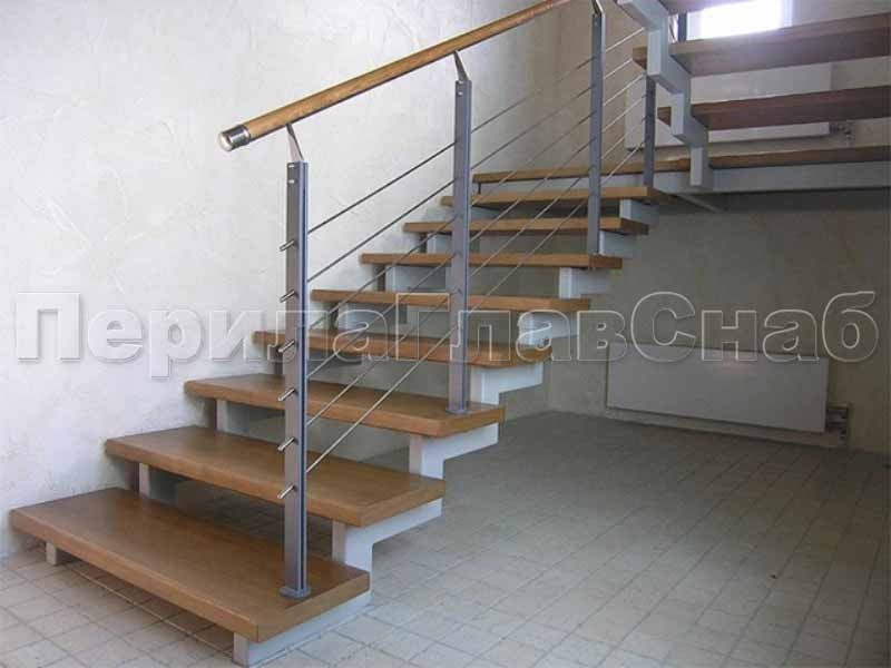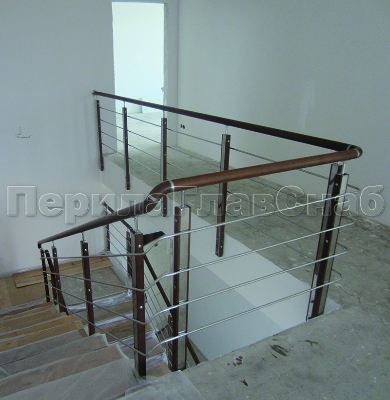 Записаться на встречу Четыре ригеля на держателях, круглый деревянный поручень и квадратные стойки