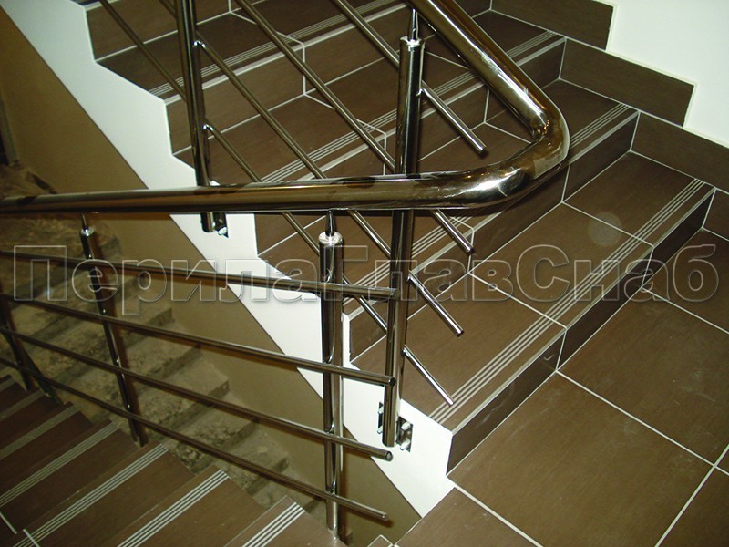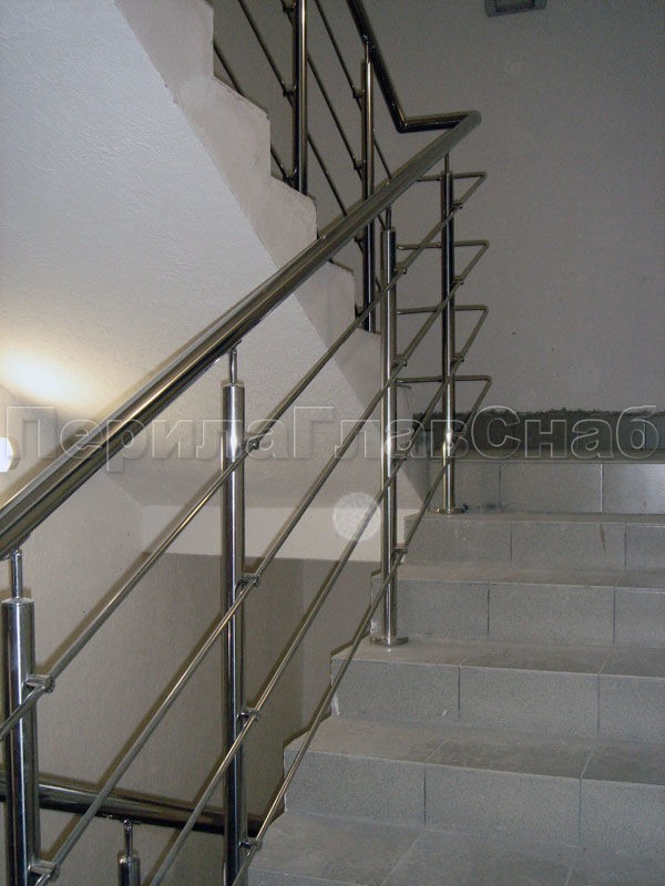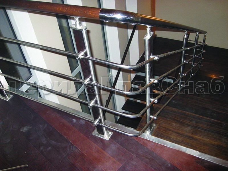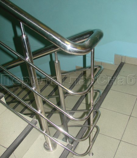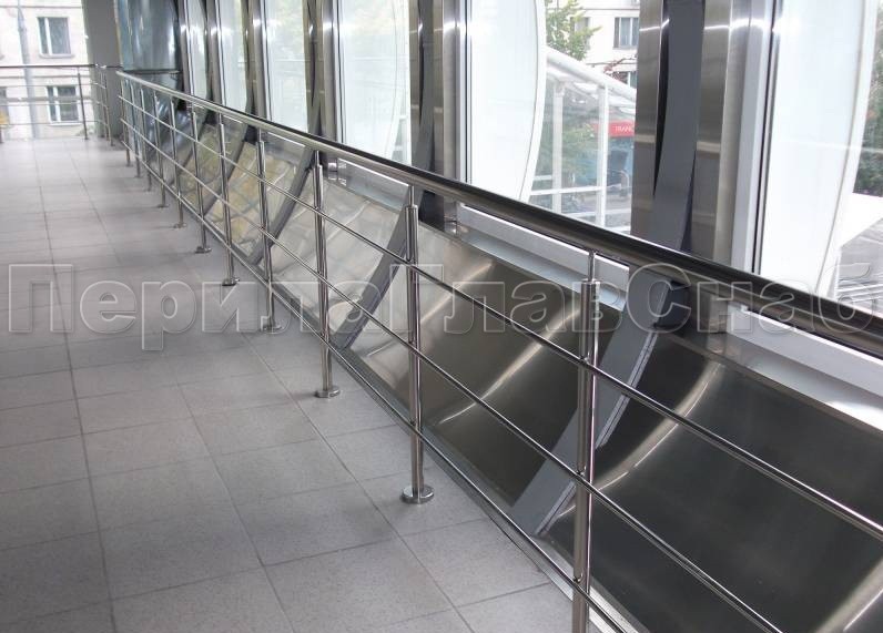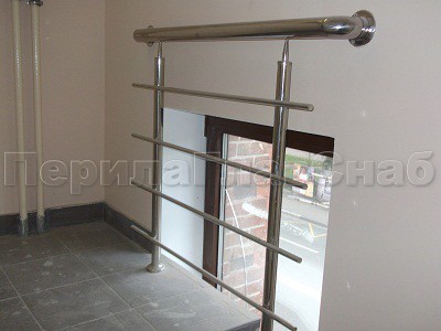 Записаться на встречу Четыре ригеля на держателях, квадратный поручень и круглые стойки