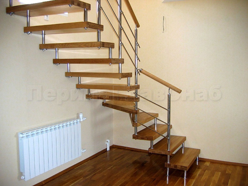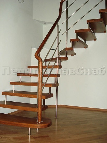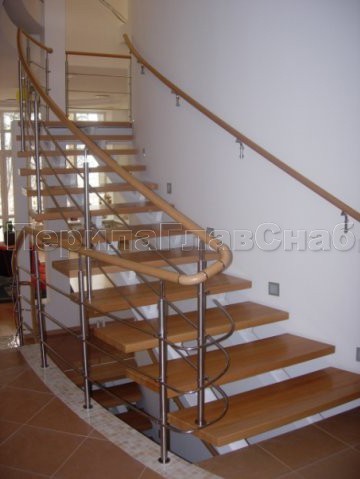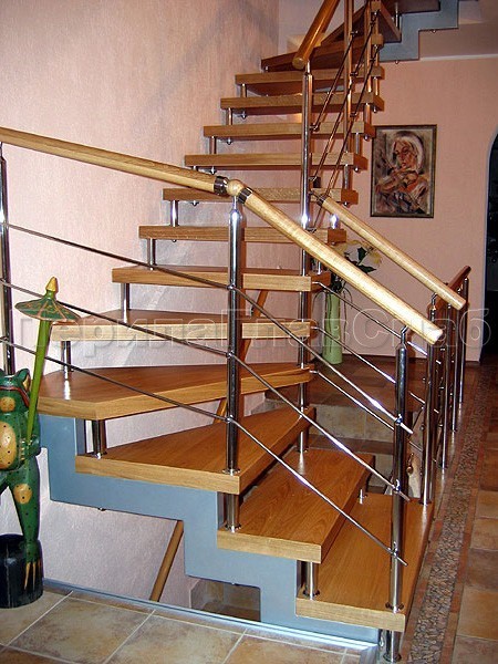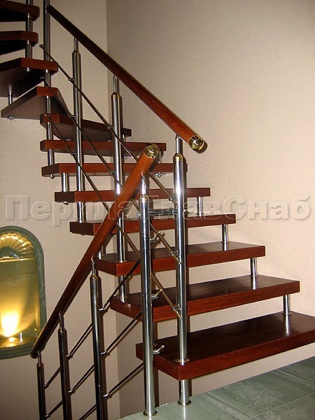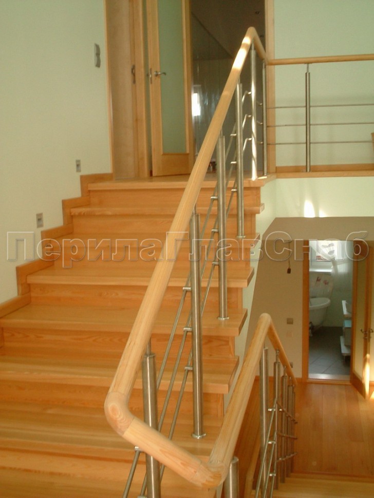 Ограждения с двумя стойками в каждую ступень с деревянным поручнем и без ригелей