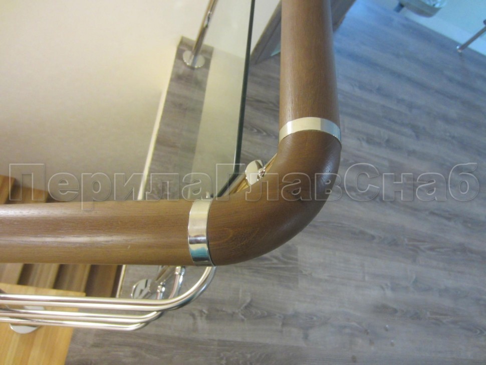 Два ригеля на держателях, круглый деревянный поручень и круглые стойки