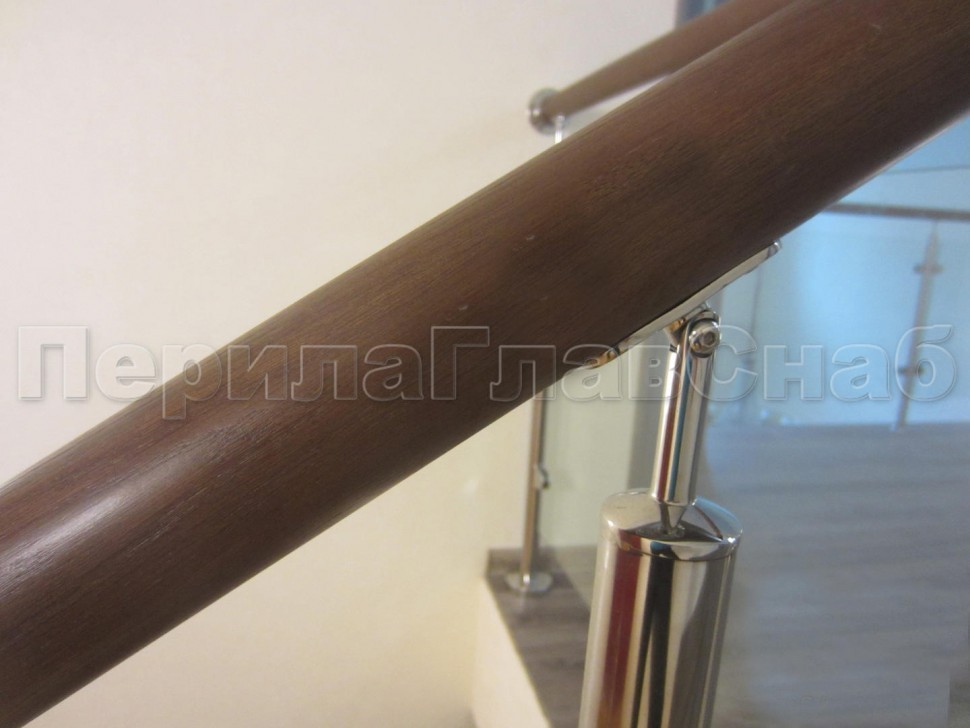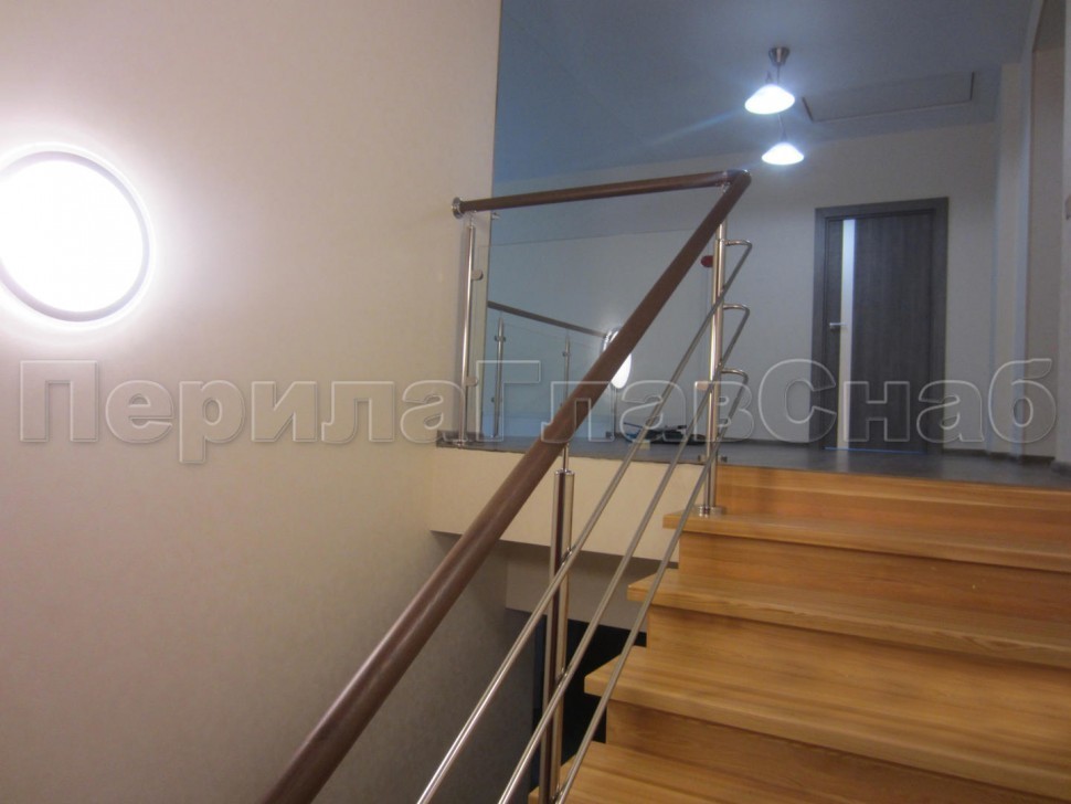 Нержавеющие ограждения без ригелей с круглым деревянным поручнем и стойками с деревянными вставками