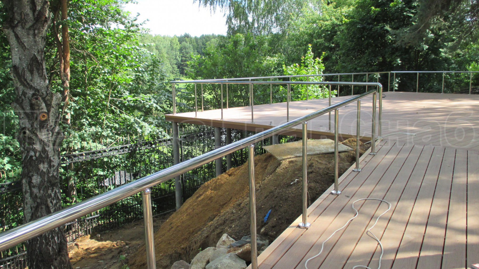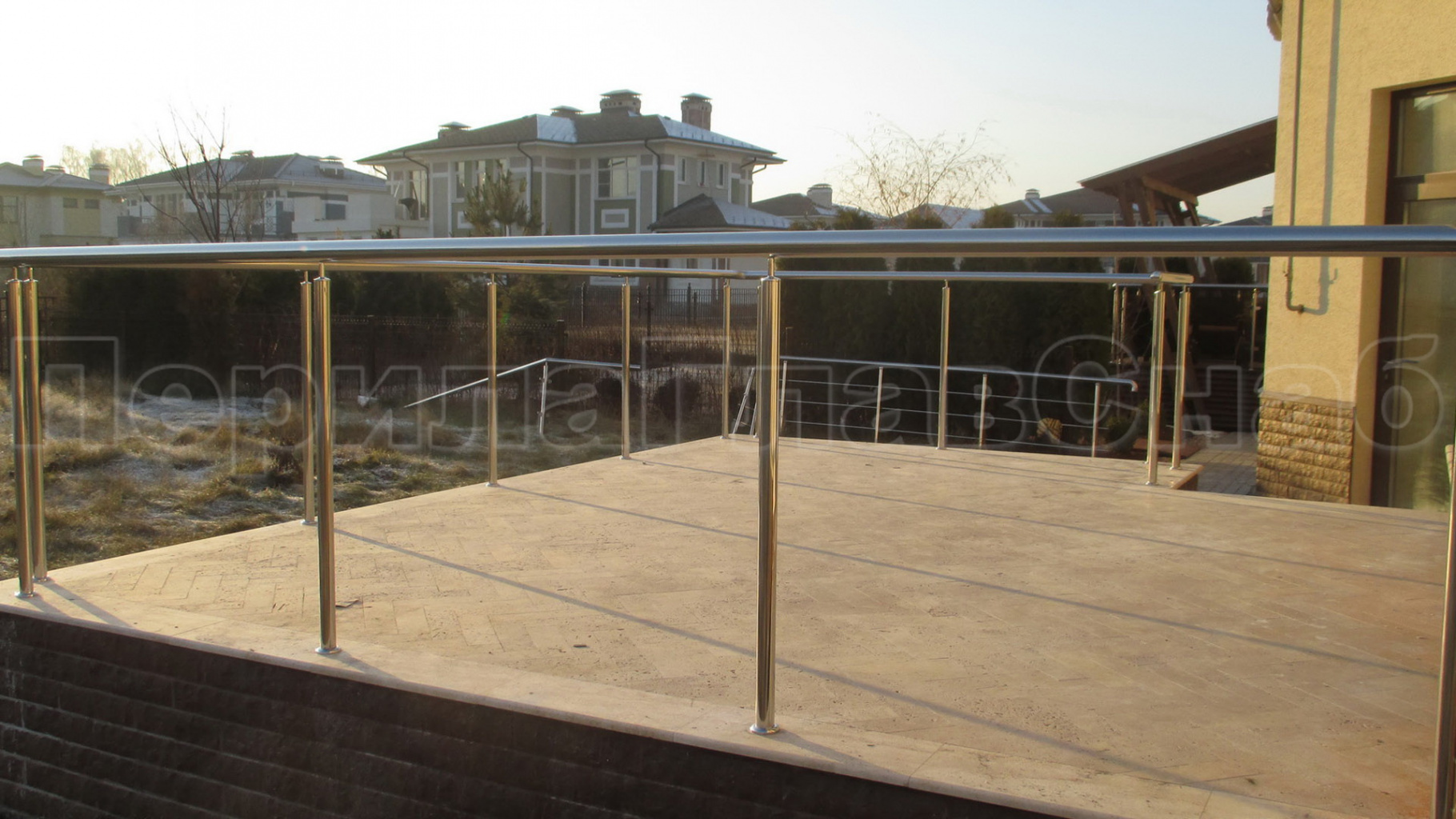 Ограждения из нержавейки. Заполнение из тросиков (нестандартная конфигурация) для крыльца