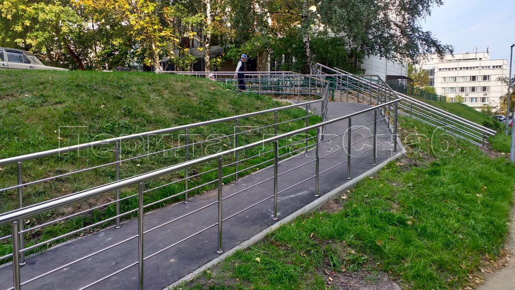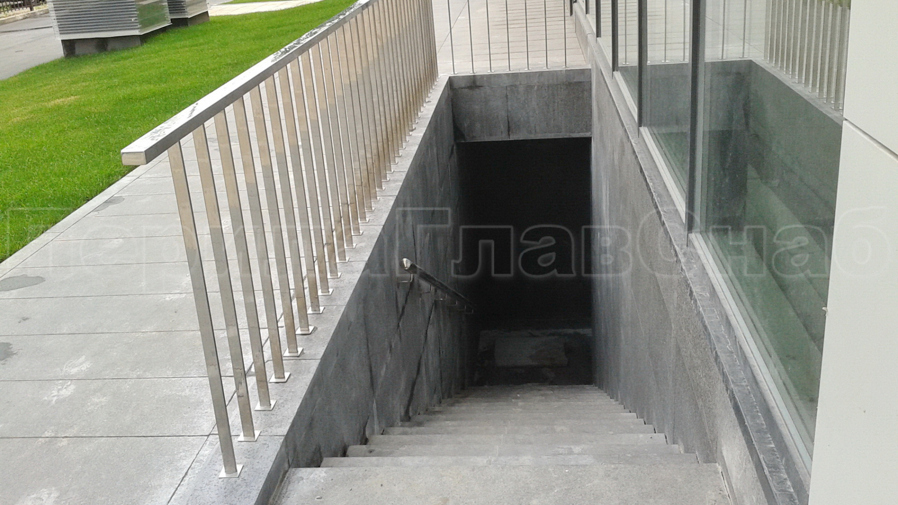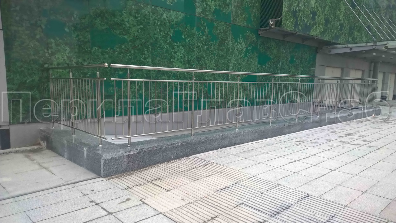 Нержавеющие ограждения для школ и детских садов с вертикальным заполнением “Частокол” - вариант №1 для крыльца