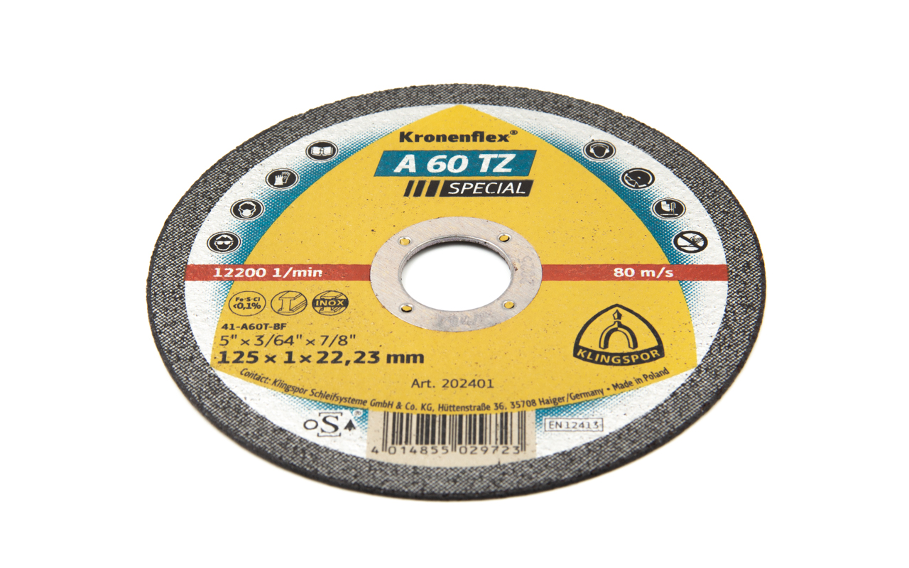 Диск тонкий, с двойной связкой внутри, режет быстрее аналогов и шов после реза не ржавеет (металл не успевает сильно разогреться). Если работа на улице или на берегу моря, лучшего варианта вам не найти. Лидер по безопасности реза – профессионалы им режут без кожуха (случаев когда этот диск разлетался нами не зафиксировано. Никогда не пренебрегайте техникой безопасности!).