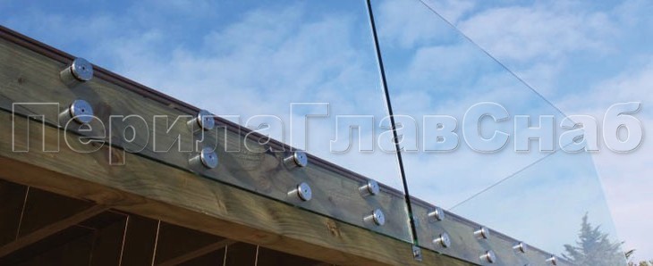 Ограждение с деревянным поручнем на точечном креплении