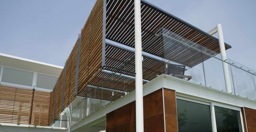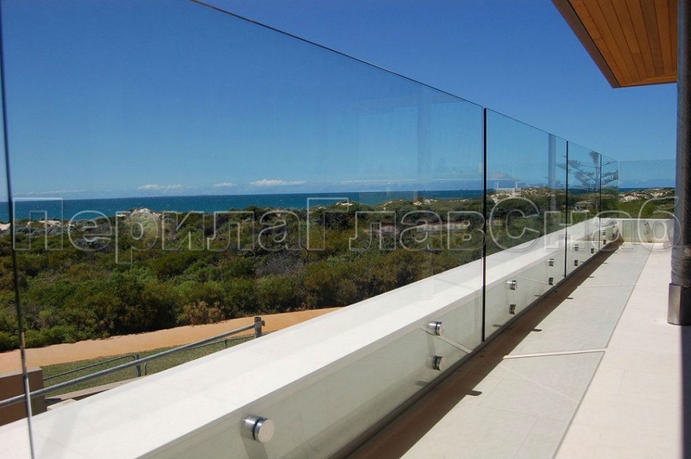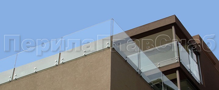 Несущая функция перераспределена между стеклом и стойками крепления. Высота ограждения может быть разной, в зависимости от высотности здания и наличия парапета (и его высоты).