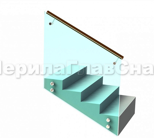 Ограждение с деревянным поручнем на точечном креплении
